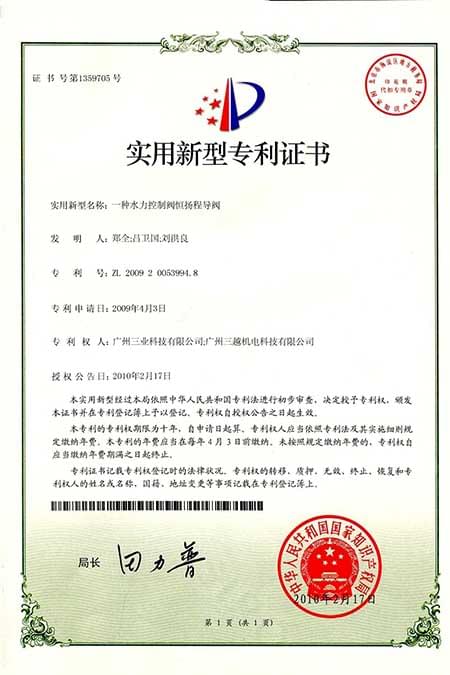 當(dāng)前位置:首頁(yè) » 三業(yè)專利證書(shū) » 18.一種水力控制閥恒揚(yáng)程導(dǎo)閥