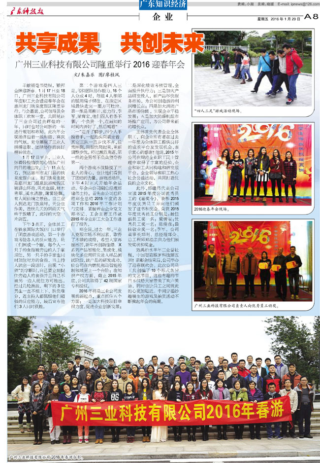 2016年1月29日《廣東科技報》刊登三業(yè)科技文章