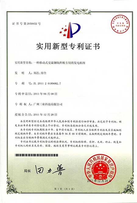 當前位置:首頁 » 三業(yè)專利證書 » 26.一種移動式交流鋼軌焊機專用的發(fā)電機組