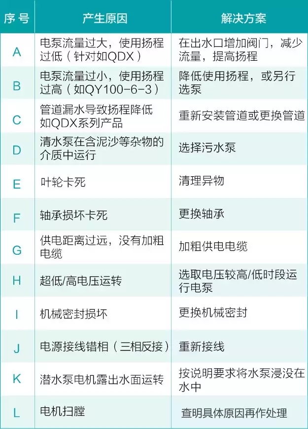 這些是造成水泵“病癥”的常見原因,并不是所有原因,實(shí)踐中處理故障,還因根據(jù)具體問(wèn)題,實(shí)際分析,應(yīng)遵從先外后里的原則,切勿盲目操作。