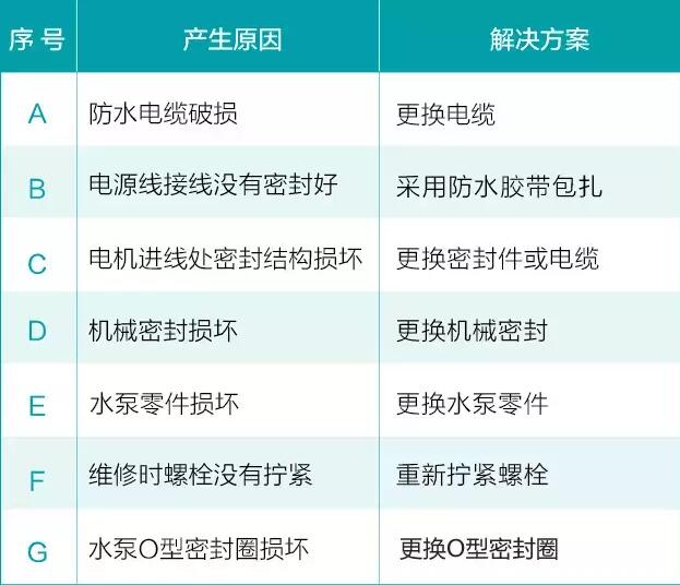 2、水泵電機(jī)電源線接線沒(méi)有密封好進(jìn)水;