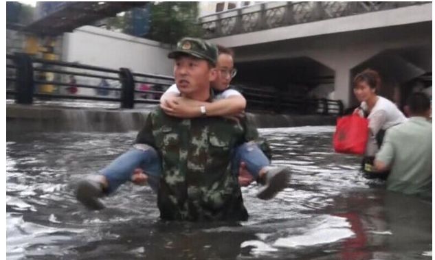 此時特勤一中隊的消防戰(zhàn)士正在歸隊準備就餐的途中,得到指揮中心通知后,消防戰(zhàn)士們立刻前往現(xiàn)場,看見車上被困乘客較多,水位不斷上漲,戰(zhàn)士們沒有來得及換衣服,便順著道路兩側圍欄,拉手淌水向車輛靠近,抵達車輛周圍,開始疏散被困乘客。