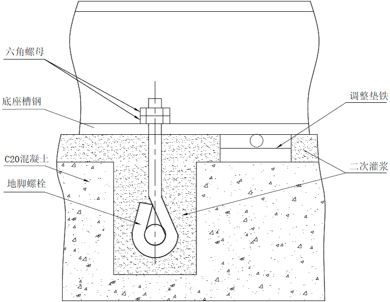 3、確認(rèn)灌漿干固后檢查地腳螺栓是否松動(dòng),擰緊螺母檢查。