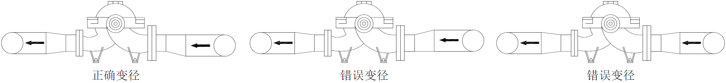 5、管道連接變徑管時(shí),進(jìn)、水管應(yīng)安裝單邊偏心異徑管,應(yīng)使上平安裝,收縮管在排出管和垂直管道上可使用直錐管(見(jiàn)圖2)。應(yīng)避免液體在管內(nèi)的波動(dòng),液體波動(dòng)和收縮的錯(cuò)誤使用都會(huì)在管路內(nèi)形成氣室從而妨礙泵的正常使用。