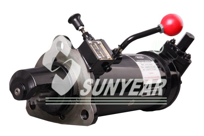 為了避免移動泵車因長期存放,導(dǎo)致蓄電池沒電而無法啟動柴油機的情況,廣州三業(yè)移動泵車采用了彈簧儲能起動器作為柴油機啟動的備用裝置,它采用純機械式結(jié)構(gòu)并配以獨特離合機構(gòu),除人力外不需借助任何其他能源來完成工作過程,因此,當(dāng)蓄電池沒電時,可通過人工起動裝置啟動柴油機。