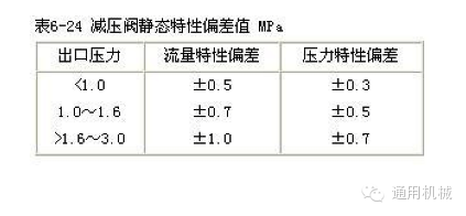 壓力和流量特性試驗的方法是先調(diào)定進(jìn)口和出口壓力,在此壓差下改變出口流量的30%,或固定流量而改變進(jìn)口壓力的30%,這時分別測量出口壓力,其偏值符合表6-24中規(guī)定為合格。
