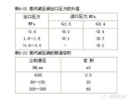 試驗方法為:進(jìn)口壓力調(diào)定后,逐漸調(diào)節(jié)該閥的調(diào)節(jié)螺釘,使出口壓力在最大與最小值范圍內(nèi)能靈敏地、連續(xù)地變化,不得有停滯、卡阻現(xiàn)象。對蒸汽減壓閥,當(dāng)進(jìn)口壓力調(diào)走后,關(guān)閉閥后截斷閥,出口壓力為最高和最低值,在2min內(nèi),其出口壓力的升值應(yīng)符合表6-22中規(guī)定,同時,閥后管道容積符合表6-23中規(guī)定為合格;對水、空氣減壓閥,當(dāng)進(jìn)口壓力調(diào)定后,出口壓力為零時,關(guān)閉減壓閥進(jìn)行密封性試驗,在2min內(nèi)無泄漏為合格。