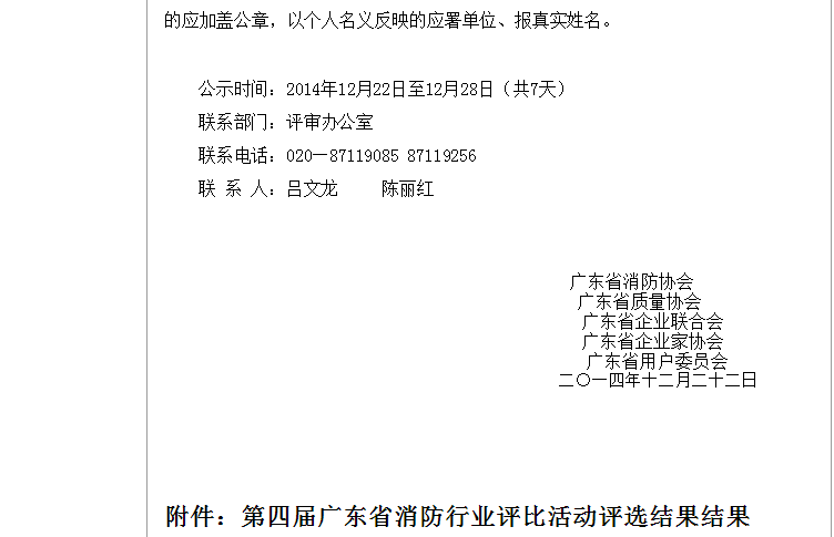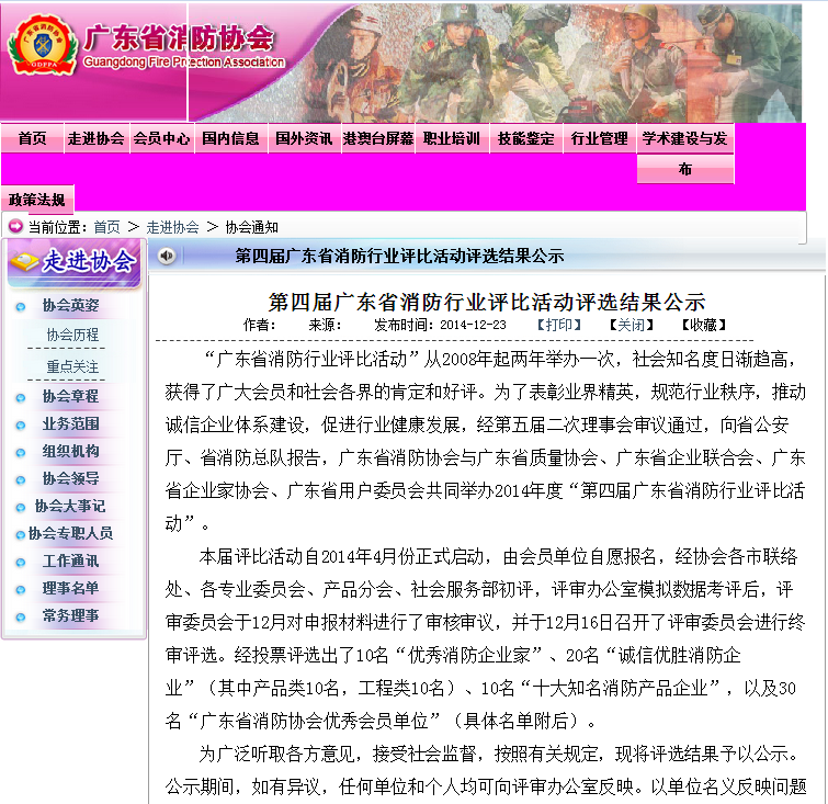 尊敬的會員單位,在“第四屆廣東省消防行業(yè)評比”活動中,貴單位榮獲“誠信優(yōu)勝消防企業(yè)(產(chǎn)品類)”,相關(guān)公示可查看廣東省消防協(xié)會網(wǎng)站www.gdfpa.com通知公告欄。如有疑問,可致電協(xié)會020-87119256。表示恭賀,并感謝您一直以來對協(xié)會工作的支持!
