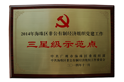 恭喜我公司榮獲“2014年海珠區(qū)非公有制經(jīng)濟(jì)組織黨建工作三星級(jí)示范點(diǎn)”牌匾