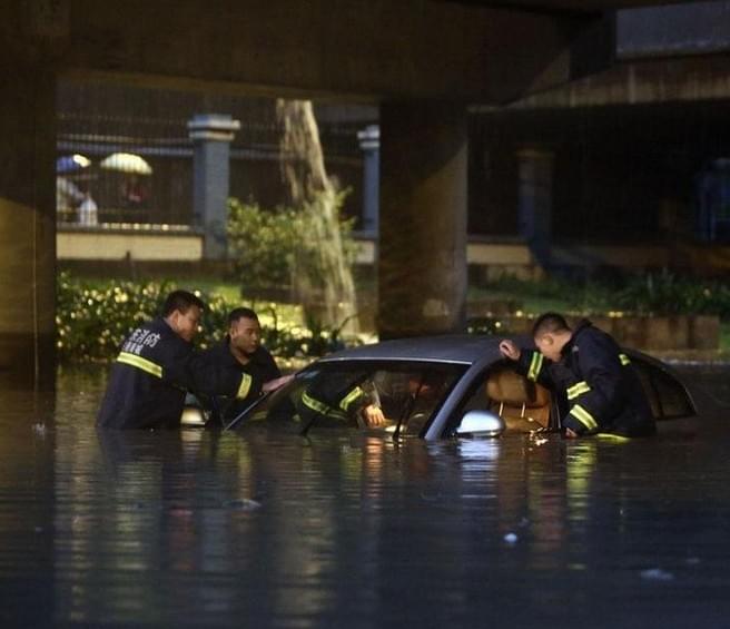 2014年3月30日傍晚,廣東東莞降暴雨,南城雅園橋底積水最深達(dá)1.5米。一輛小轎車(chē)在積水深處拋錨。(蘇仕日)