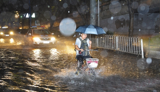 昨晚,廣州暴雨,天河路出現(xiàn)積水 羊城晚報(bào)記者 林桂炎 攝
