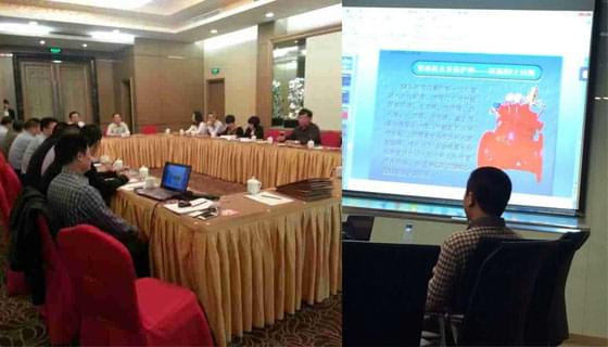 圖為我司應(yīng)用總工程師王偉在交流會現(xiàn)場講解海水提升泵