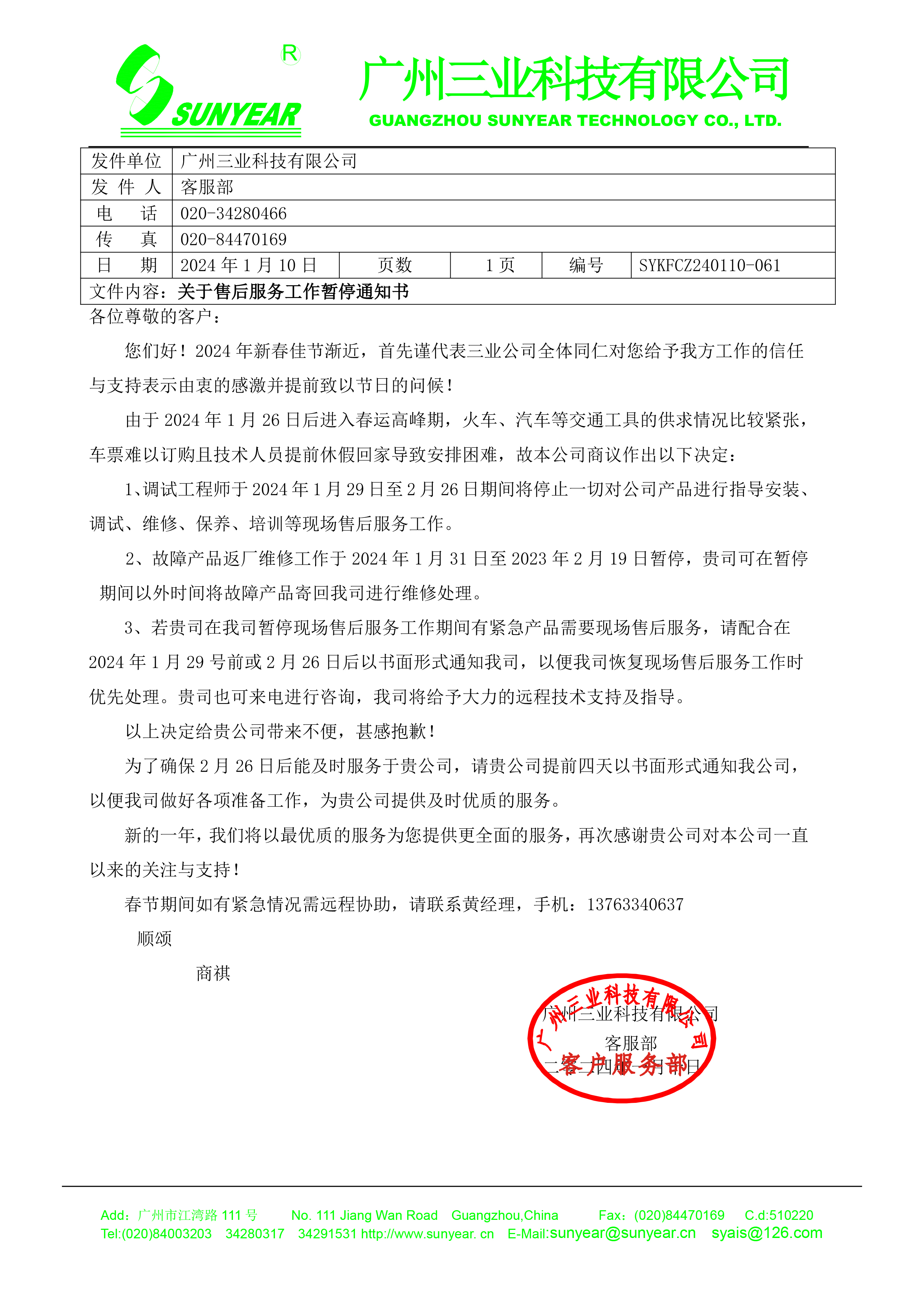 - 關(guān)于2024年售后服務(wù)工作暫停通知書(shū)