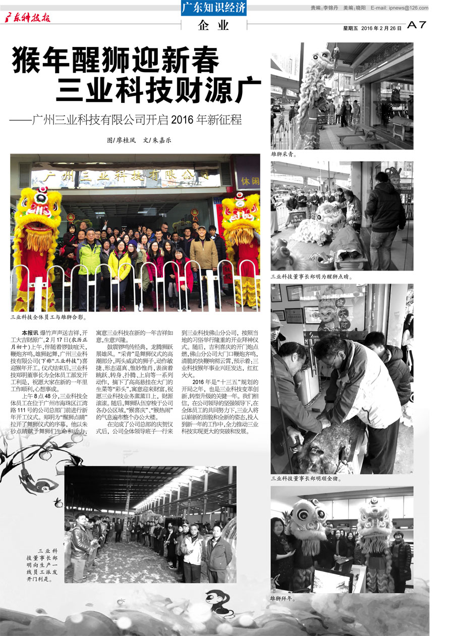 猴年醒獅迎新春,三業(yè)科技財(cái)源廣--廣東科技報(bào)