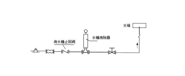 該設備主要防止停泵水錘,一般安裝在水泵出口管道附近,利用管道本身的壓力為動力來實現(xiàn)低壓自動動作,即當管道中的壓力低于設定保護值時,排水口會自動打開放水泄壓,以平衡局部管道的壓力,防止水錘對設備和管道的沖擊,消除器一般可分為機械式和液壓式兩種,機械式消除器動作后由人工恢復,液壓式消除器可自動復位。