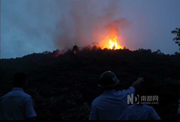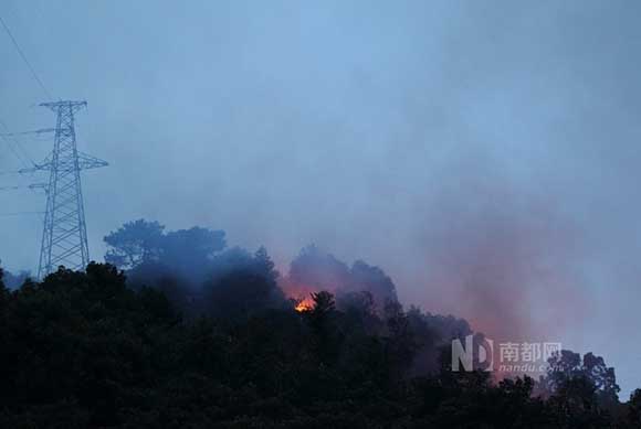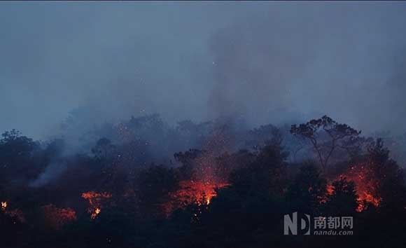 江門白水帶山火突起 群眾盼“天兔”降雨早點(diǎn)來(lái)