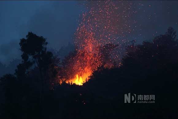昨日下午17時(shí)左右,江門外海金溪村后面,靠近茶庵寺風(fēng)景區(qū)的山林突起大火,由于強(qiáng)臺(tái)風(fēng)“天兔”即將來(lái)臨,刮起大風(fēng),火借風(fēng)勢(shì),山火迅速蔓延,形成多個(gè)火 點(diǎn)。截至昨晚21時(shí),江門、江海兩級(jí)政府已組織消防、園林等部門,以及當(dāng)?shù)孛癖?、村民等?shù)百人的隊(duì)伍上山撲救,火勢(shì)暫時(shí)得到控制,但還未撲滅,當(dāng)?shù)厝罕娂?紛表示盼“天兔”攜雨來(lái)滅火。