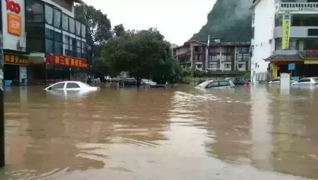 5月8日零時至9時,陽朔縣境內(nèi)出現(xiàn)連續(xù)強降雨,部分地區(qū)降雨量超過200毫米,遇龍河、金寶河水位暴漲??h城部分區(qū)域出現(xiàn)嚴重內(nèi)澇,主干道蟠桃路、抗戰(zhàn)路、疊翠路一帶變成一片汪洋。目前全縣景區(qū)景點已全部暫時關(guān)停,5月9日中小學校將停課1天。