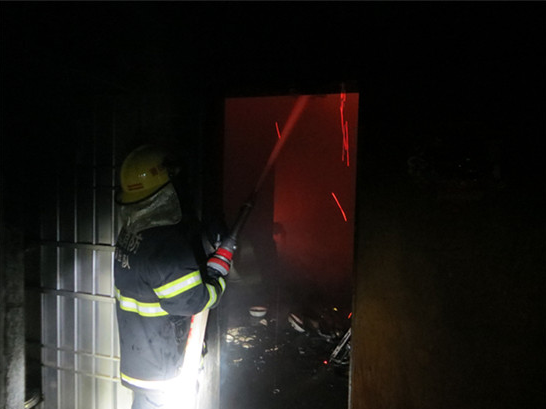 現(xiàn)場,只見著火的是一棟磚混結(jié)構(gòu)的民房,卷簾門無法打開,不停地冒出濃煙。消防官兵迅速繞至后門出一把水槍滅火,由于屋內(nèi)主要是家具、家用電器及一輛摩托車在燃燒,消防官兵佩戴空氣呼吸器深入內(nèi)攻滅火,不到10分鐘,大火被成功撲滅。為防止出現(xiàn)復(fù)燃的情況,消防官兵對四周進(jìn)行澆濕冷卻,確認(rèn)無復(fù)燃跡象后,收整器材歸隊(duì)。