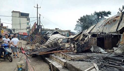 6月29日,記者在現(xiàn)場(chǎng)看到,5間店鋪已化為廢墟,現(xiàn)場(chǎng)散落著被燒得泛白的鐵皮。