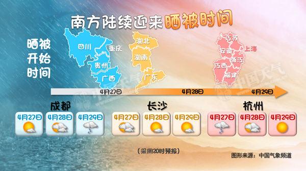 4月27日-29日,南方迎來降水間歇期,利于曬被。(采用26日20時預報)
