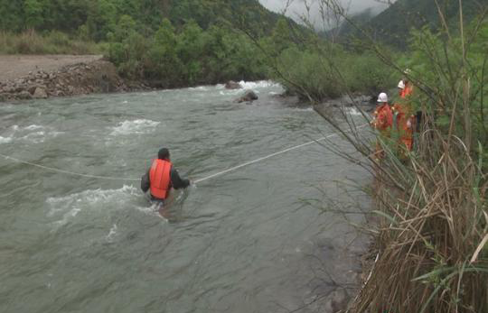 暴雨還導(dǎo)致江西局部山區(qū)山洪暴發(fā)。4月21日,江西省武寧縣黃塅茶廠方向一條小河突發(fā)山洪,平日用于通行的便橋被淹沒(méi),兩名群眾被困河對(duì)岸。當(dāng)?shù)叵啦块T(mén)迅速出動(dòng),在河上面搭起一條“生命繩索”,渡河將兩名群眾營(yíng)救至安全區(qū)域。