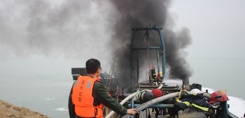 沙船故障燃大火 邊防官兵聯(lián)合駐地合力救援