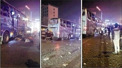 “我不信,心想怎么可能”,寇先生稱,當(dāng)他看到朋友通過微信發(fā)來的照片時(shí),驚呆了,照片顯示,一臺(tái)藍(lán)色大客車在夜幕中殘破不全,玻璃窗破碎,地上躺著人,有消防人員現(xiàn)場救援。