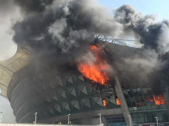 上海虹口足球場(chǎng)今晨燃起大火 現(xiàn)場(chǎng)濃煙滾滾
