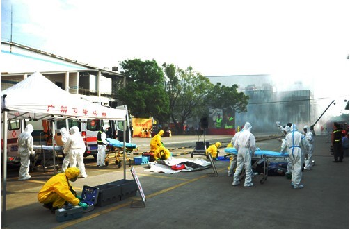 演練內(nèi)容主要包括人員疏散、應(yīng)急響應(yīng)、現(xiàn)場處置等科目。省安全監(jiān)管局,廣州市政府,廣州市委宣傳部,廣州市政府應(yīng)急辦,廣州市公安局、民政局、環(huán)保局、交委、衛(wèi)生局、質(zhì)監(jiān)局、氣象局,黃埔區(qū)政府及相關(guān)單位共200多人參加了演練。