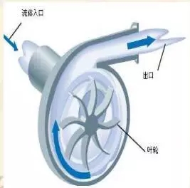 長(zhǎng)軸泵泵殼內(nèi)灌滿被輸送的液體,啟動(dòng)后,葉輪由軸帶動(dòng)高速轉(zhuǎn)動(dòng),葉片間的液體也必須隨著轉(zhuǎn)動(dòng)。在離心力的作用下,液體從葉輪中心被拋向外緣并獲得能量,以高速離開葉輪外緣進(jìn)入蝸形泵殼。