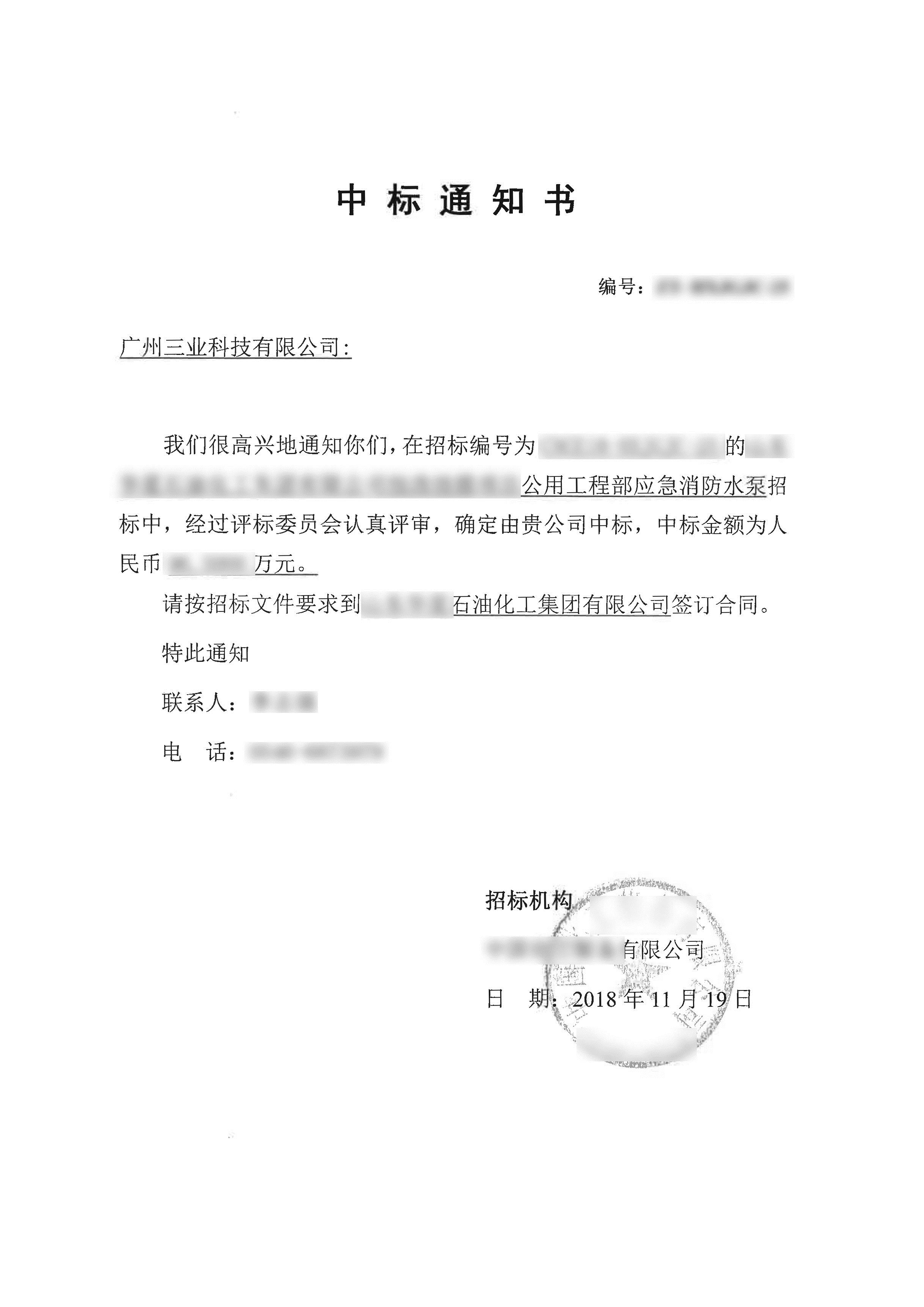 又中標(biāo)!廣州三業(yè)在山東某石化應(yīng)急消防泵組招標(biāo)項(xiàng)目中標(biāo)