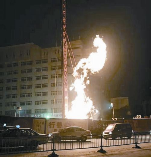 鄭州一地鐵施工地燃?xì)夤艿辣煌跀?引發(fā)大火
