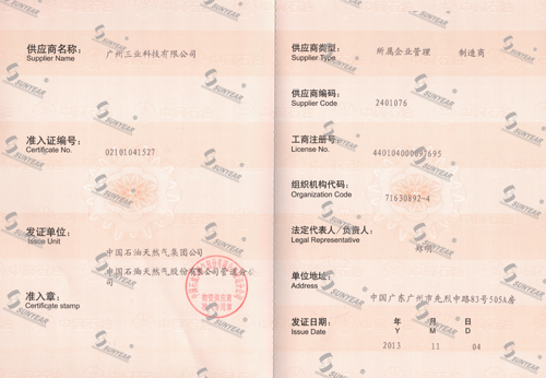《中國石油天然氣集團物資供應(yīng)商準入證》