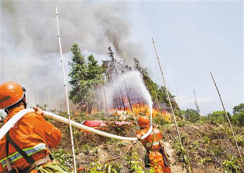 隨著“火勢”的迅猛發(fā)展,緊急增援的綦江區(qū)、南川區(qū)、萬盛經(jīng)開區(qū)森林消防專業(yè)應急隊,以及市森林消防應急分隊陸續(xù)趕到火場,協(xié)同沙坪壩區(qū)撲火應急隊利用柴油機消防泵接力實施以水滅火。市森林航空護林站出動的2架K-32直升飛機,開始利用吊桶實施空中以水滅火。最終,通過各隊伍間的緊密協(xié)作,成功撲滅了“山火”。