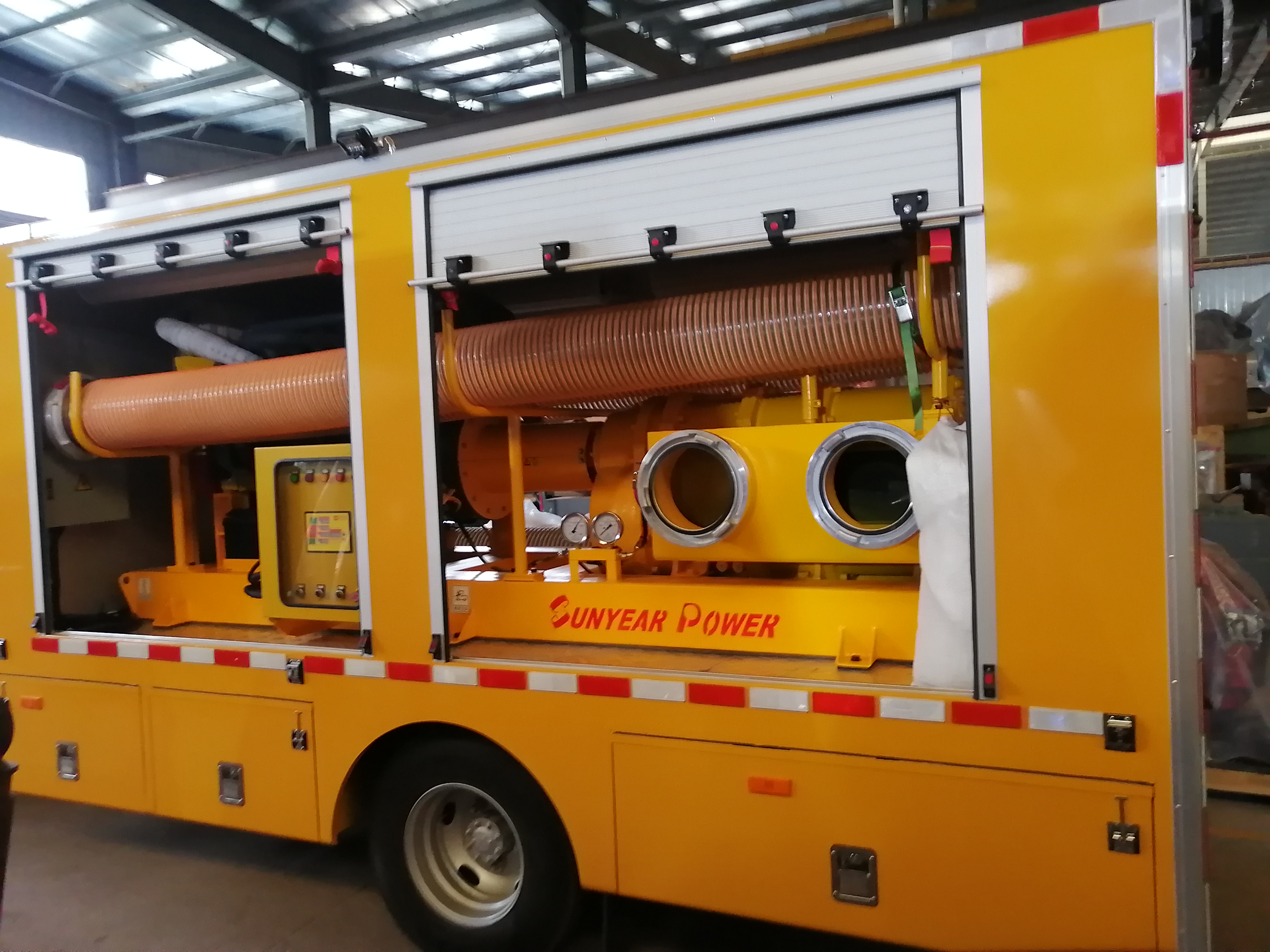 廣州三業(yè)科技提供的1輛自行走應(yīng)急搶險(xiǎn)泵車,用于青島萊西市消防救援大隊(duì)?wèi)?yīng)急搶險(xiǎn)抽排供水。在2022月9月測試下線成功交于客戶安裝現(xiàn)場使用,得到萊西市消防救援大隊(duì)一致好評。