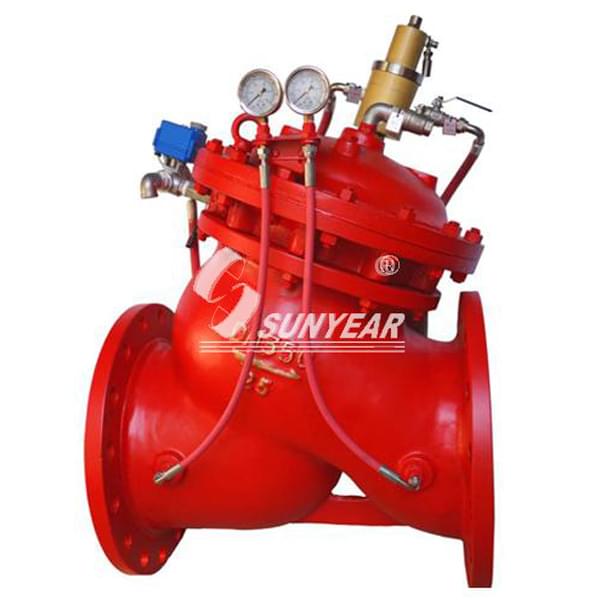 1、電動(dòng)泄壓/安全閥工況電動(dòng)泄壓/安全閥的另一個(gè)功能是作為電動(dòng)(遙控)泄壓。系統(tǒng)待機(jī)巡檢時(shí)需要對管網(wǎng)進(jìn)行泄壓來模擬消防設(shè)備用水,逐臺(tái)檢查水泵的性能,電動(dòng)泄壓/安全閥應(yīng)用在系統(tǒng)上便可以執(zhí)行系統(tǒng)的編程命令實(shí)施旁路泄壓。